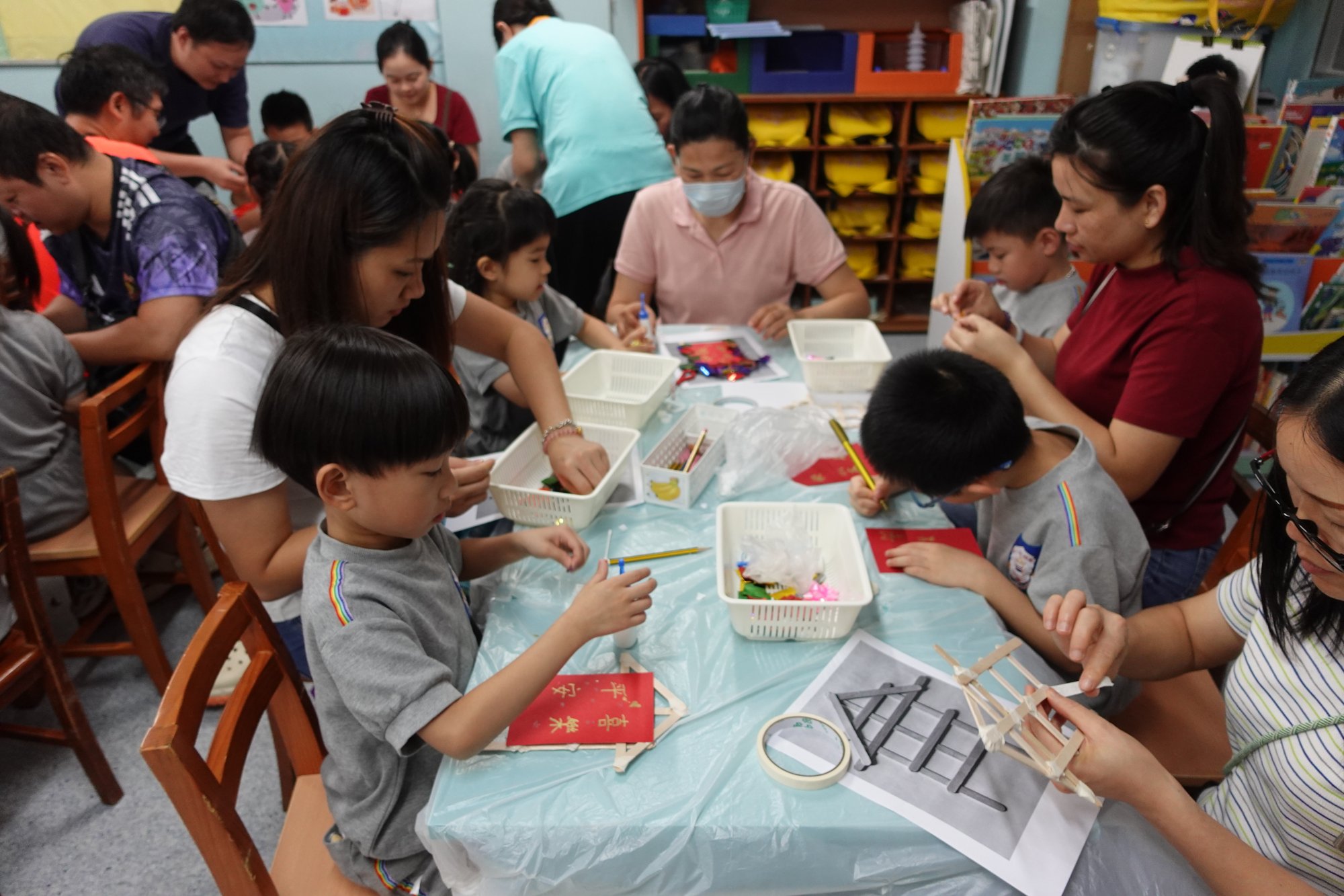 The activity was divided into K3,K2 and K1 classes, where children created various traditional Chinese handicrafts. The K3 class created flower cards, introducing children and parents to the long-standing folk art of flower cards. Flower cards feature designs of flowers, auspicious symbols, and characters, symbolizing blessings and joy, and are therefore primarily used to celebrate festive occasions. The K2 class created colorful oil-paper umbrellas, allowing parents and children to appreciate the craftsmanship and practicality of these umbrellas, a symbol of traditional Chinese culture. The K1 class also engaged in creative stone painting, where parents and children created panda-themed artwork on stones. Stone painting is not only an artistic endeavor but also a form of cultural heritage.