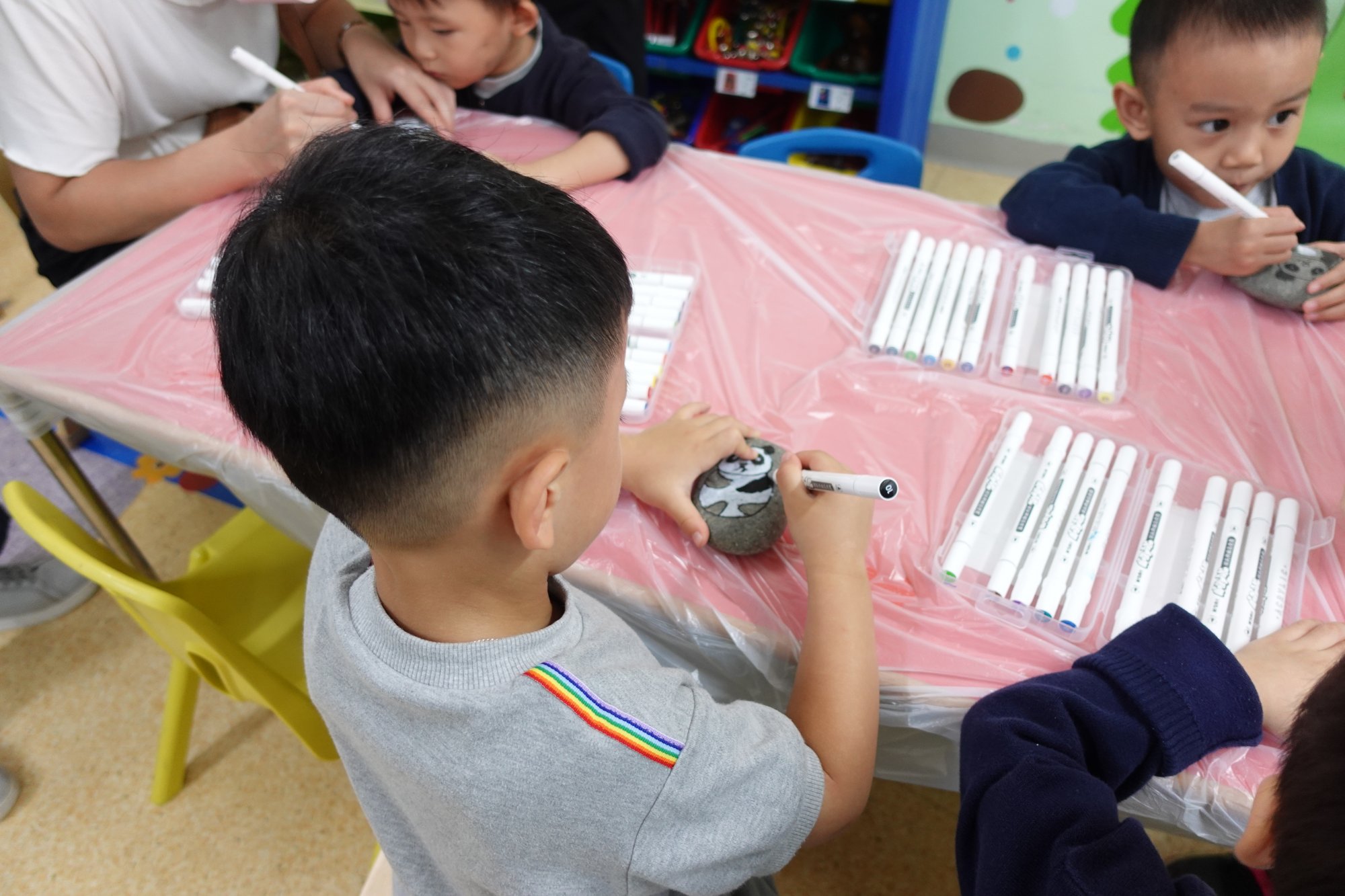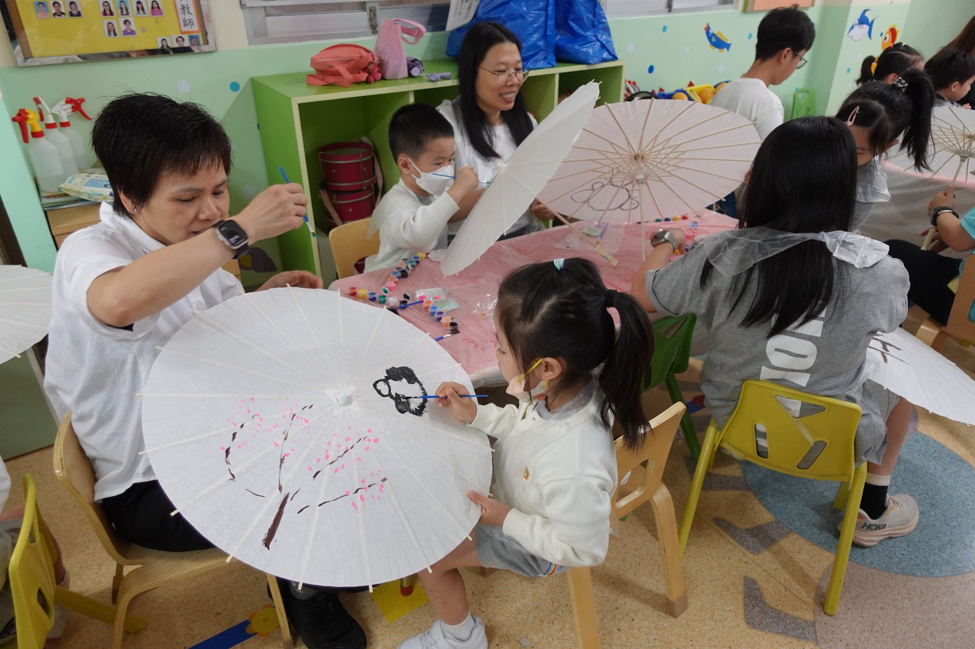 是次的活動分幼兒班、低班和高班三級進行不同款式的中國傳統藝術創作,幼兒班是創意石頭畫,將平凡的石頭畫上以熊貓作主題的創作,把石頭轉化為獨特的藝術品和裝飾品。低班創作幻彩油紙傘,在遮風避雨的油紙傘上繪畫具有中國特式的畫像,如︰熊貓、竹樹、桃花等等。把油紙傘幻化成一種具有濃厚傳統文化和吉祥寓意的藝術品。高班製作祝賀花牌,知道花牌根植於香港的傳統工藝,以其繁複的製作過程和豐富的文化內涵聞名於世,在重要場合不可或缺的喜慶元素。 |