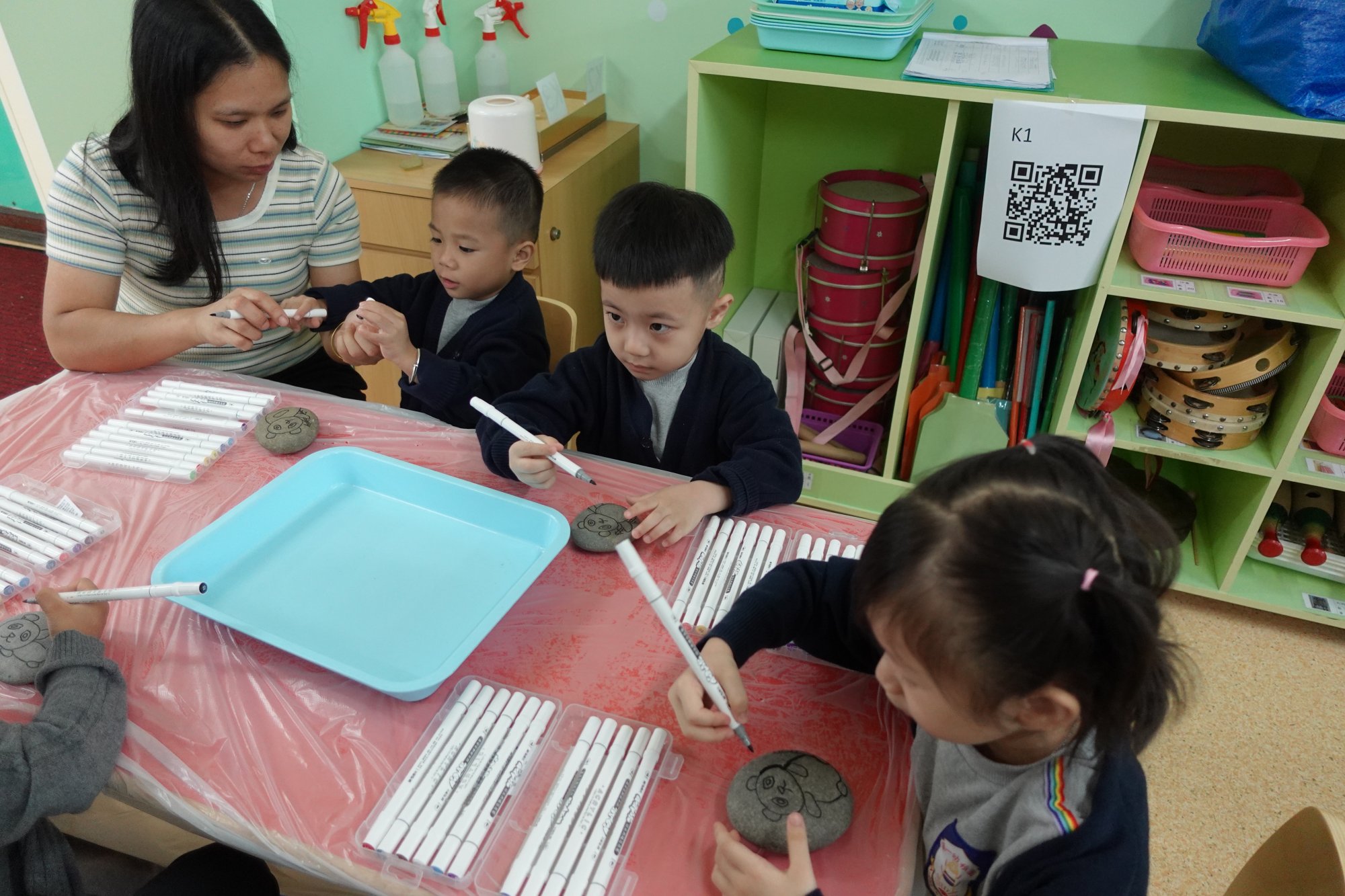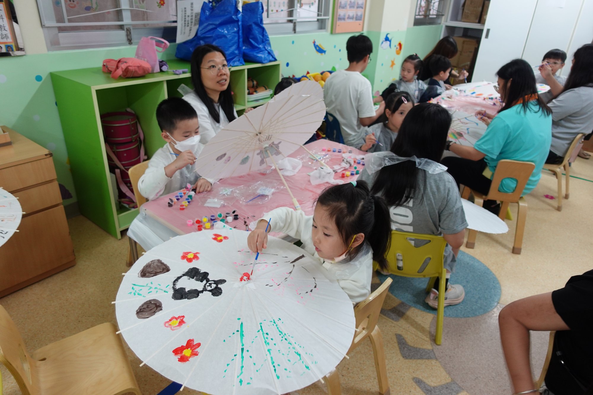 活動分高班、低班和幼兒班進行製作不同款式的中國傳統手工藝。高班製作花牌,讓幼兒和家長知道花牌具有悠久歷史的民間藝術,花牌上的圖案包括花卉、吉祥物和文字,象徵著祝福和喜慶,因此花牌主要用於慶祝喜慶的活動。低班製作幻彩油紙傘,在活動的過程中,家長和幼兒能體會油紙傘的製作工藝和實用性,更是中國傳統文化的象徵。幼兒班進行創意石頭畫,家長和幼兒在石頭上繪畫以熊貓為主題的藝術風格創作,石頭畫不僅是一種藝術創作,還是一種文化傳承。 |
