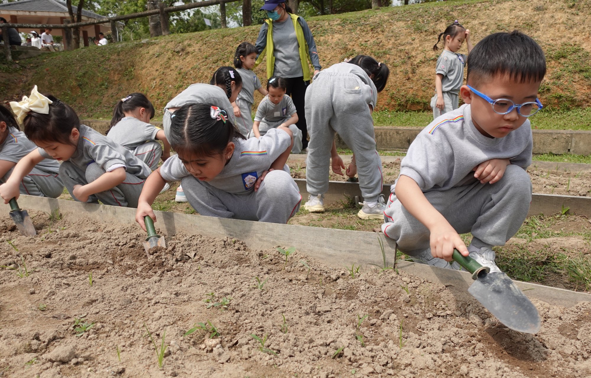 獅子會自然教育中心派出職員帶領幼兒到農作物區,然後介紹如何運用耕作用具和澆水用具,幼兒在區內可以按照專業指導員指導下學習如何播種、施肥和灌溉,幼兒能親自在田裏了解各種農作物的生長環境和護理方法,同時可以親手採摘農作物,體驗收成的樂趣。在自由活動時可以參觀「貝殼館」、「昆蟲館」、「漁館」、「農館」等,讓幼兒多體驗和多認識。 |
